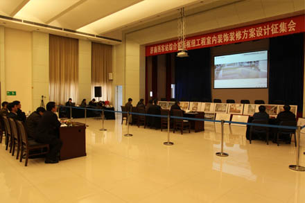 2月20日,集团公司举行“济南西客站综合客运枢纽工程室内装饰装修方案设计征集会”,邀请了省内堪称国内一流的专家组进行设计方案的现场评选。集团公司董事长吴宗昌、总经理王谦等领导参加并观摩了设计方案的征集评标过程。