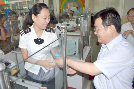 吴宗昌董事长来到总站的售票处,把矿泉水亲自送到每一名售票人员的手中,并嘱咐大家要注意高温天气,合理安排作息时间,努力为乘客提供更好的服务。在检票处,看到正在岗位上为旅客服务的山东省优秀党员李文时,吴董事长快步走上去,把一瓶冰镇矿泉水送给她,特别叮嘱她要密切关注旅客的需要,注意高温条件下旅客的各类情况,并感谢她为企业做出的贡献。随后吴董事长还来到兔兔快运和发车区,亲切看望了总站的工作人员和驾乘人员。