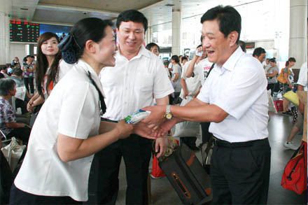 王谦总经理来到总站报班处,向坚守工作岗位的工作人员表示慰问,把冰糕、矿泉水一一送到他们手中。在发车区,看到济宇高速的驾驶员时,王总叮嘱他要注意高温下的行车安全,保证让旅客有一个清凉、舒适的旅途环境。王总还与客车的乘务人员亲切交谈,了解暑期运输中客流的变化情况,嘱咐大家克服高温带来的不利因素,竭尽全力为旅客提供各类服务。