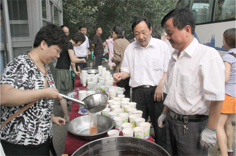 您现在的位置是:首页 > 集团要闻 集团公司“送清凉”服务队深入一线 次 集团要闻 发布时间:2011-07-21 17:33:13 集团公司“送清凉”服务队深入一线 7月21日,集团公司工会办与总部党支部组织四十余名总部党员干部组成暑期“送清凉”服务队,来到位于济青高速公路上的刁镇高速公路客运站,冒着30多度的高温为过往客车的乘车旅客和驾驶员,送去一碗碗爽口的绿豆汤。一上午的时间里,共为过往近百部客运车辆、近3000余名旅客送去了夏日的清凉。集团公司董事、工会主席张志坚、党委副书记杨国强、纪委书记刘凤仪、总经济师冯唯一、总经理助理齐杰带队参加了此次“送清凉”活动。 (党委组宣部)
