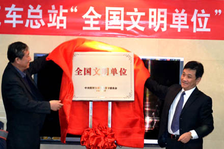 2012年1月18日,省文明办、省国资委文明办共同在山东交运集团济南长途汽车总站举行“全国文明单位”揭牌仪式,省文明办副主任、活动协调处处长宫松章,活动协调处科长张云峰,省国资委党委宣传与群众工作部部长胡兵,调研员张庆旭,集团公司董事长、党委书记吴宗昌、总经理、党委副书记王谦,党委副书记杨国强出席了揭牌仪式。
