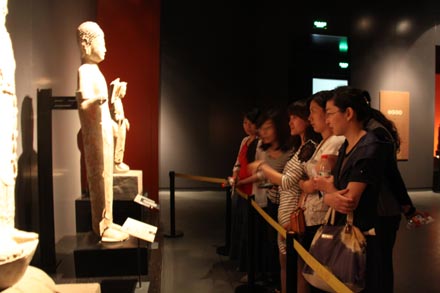 山东省博物馆是山东省文化建设的重要标志,也是济南城市建设的新亮点,馆藏文物20多万件,为传承齐鲁文明、弘扬优秀传统文化发挥着重大作用。在讲解员的引导下,全体党员、团员依次参观了“佛教造像艺术展”、“汉代画像艺术展”、“明代鲁王展”、“馆藏书画展”、“孔子文化展”、“山东历史文化展”等展厅。大气庄重的佛教造像,精炼质朴的汉代画像石,挥洒自如的书法作品,博大精深的孔子文化,精美丰富的瓷器,巧夺天工的鲁绣,源远流长的山东文化等都给全体团员青年留下了深刻印象。