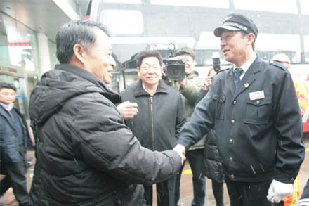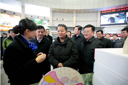 1月21日,交通运输部杨传堂部长及部有关领导在张建国副省长、贾学英厅长、高洪涛副厅长、江成局长的陪同下,莅临集团长途汽车总站视察指导春运工作,并亲切看望和慰问了一线干部职工。集团吴宗昌董事长、王谦总经理等相关领导陪同视察。