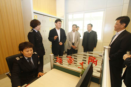 视察过程中,张传亭与党的十八大代表、检票员李文亲切交谈,鼓励李文及广大优秀员工继续发扬心系旅客、真情服务的精神,进一步塑造“山东交运”更加亮丽的服务品牌。在安全报班处,张厅长对集团采用人脸识别系统、酒精检测器、资质审查信息库等有效技术手段给予了高度评价。在“最美司机”宋洋先进事迹展板前,他勉励广大驾驶员要以宋洋为榜样, 恪尽职守,扎实工作,不断提高行车安全水平和服务质量, 在任何危急情况下,都要确保旅客生命安全。在集团安全运营监控中心,张传亭指示厅有关负责人员要积极探索高速公路监控系统与集团公司监控系统的对接工作,争取早日实现资源与信息共享,使省厅监控系统更加掌握一线动态,让运输企业能够更加及时和直观地掌握全省的实时路况,确保客运班车运行更加安全、更加科学、更加畅通。