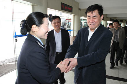 张传亭一行先后来到总站安检处、售票窗口、总服务台、检票处、驾驶员报班处、96369服务热线及集团安全运营监控中心,详细了解车站创新服务措施,询问各岗位工作情况,并亲切慰问了车站一线员工。