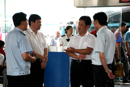 您现在的位置是:首页 > 集团要闻 吴董事长冒雨视察端午节旅客运输工作 次 集团要闻 发布时间:2013-06-10 15:25:17 吴董事长冒雨视察端午节旅客运输工作 6月10日,端午小长假的第一天,集团公司吴宗昌董事长一早冒雨来到济南长途汽车总站,现场视察端午节旅客运输工作。并与总站站长、客运公司经理、安保部部长等相关负责人就节日运输旅客服务工作、安全保障工作、运力准备情况、客流动态等进行了详细了解。于此同时,吴董事长还对总站刚刚设立的交通邮政战略合作示范点进行了现场指导。吴董事长对集团各单位高效完备的节日运输保障机制以及安全有序的运营秩序表示满意。 (总站宣)