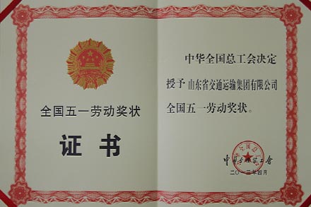 近日,从中华全国总工会传来喜讯,山东省交通运输集团有限公司被授予“全国五一劳动奖状”。