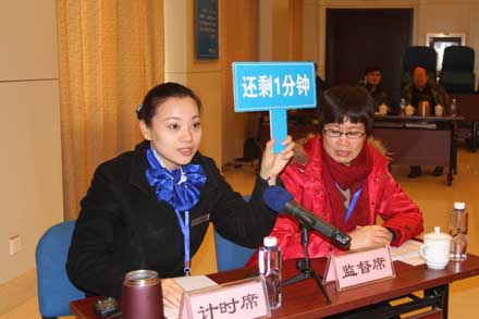 演讲答辩按照竞聘职位分组进行,共设1个主会场、4个工作室,会前通讯工具统一保管,考前、考后人员不得随意外出,相互不见面、不交流,确保了考场纪律和公平性。每位竞聘人员通过10分钟的演讲介绍自己的基本情况、工作简历、竞争优势、工作实绩和对竞聘岗位工作的设想,并在5分钟内完成审题、思考和答辩。评委按照《演讲答辩评分表》的标准进行现场打分,每组职位演讲答辩结束后统一汇总计分。