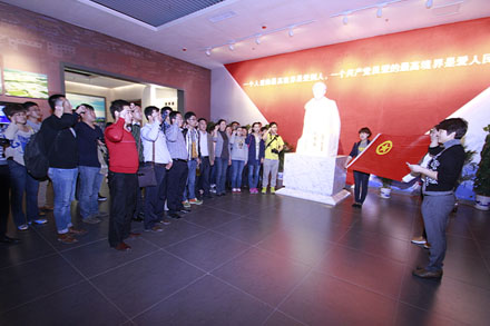 告别邱集煤矿,团员青年们来到位于聊城东昌湖边的孔繁森同志纪念馆,跟随着讲解员声情并茂的解说,团员青年们感受着这位人民好公仆的光辉事迹,为孔繁森同志“一尘不染两袖清风视名利安危淡似狮泉河水,二离桑梓独恋雪域置民族团结如冈底斯山”的精神境界所震撼,为孔繁森同志伟大的人格魅力和坚定的党性信念所感动,同时也为这样的好干部过早的离去而深感惋惜。在孔繁森同志雕塑前,全体队员庄严的重温了入团誓词。