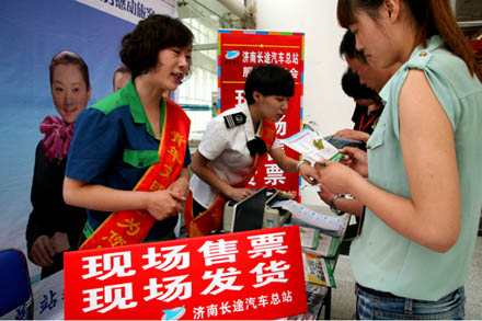 二是暑期临近,总站学子售票队率先进驻山东力明学院、山东联合大学等省城各大中专院校,为在校学子提供现场售票的便利服务,下一步总站还将陆续进驻济南市区及长清、章丘的30余所大中专院校,为学子提供现场咨询、提前二十天预售客票的服务,开通“门到门学子直通车”,实行现场发车。
