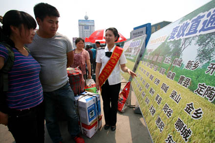三是麦收时节,对“麦客”比较集中的安徽阜阳、临泉,河南周口、郸城,省内鲁西南地区的菏泽、曹县、郓城以及临沂、聊城、济宁等地区的五十余线路发车频率进行了加密,全面开辟“麦客返乡绿色通道”和“麦收直通车”,向他们提供优先购票、优先检票、优先乘车,以及“门到门”的便利服务。