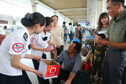 四是“六一”儿童节期间,总站针对身高超过150cm、年龄不超过14周岁的儿童特别推出“七彩蓓蕾会员卡”,凭卡购票可享九五折优惠,向小朋友们发放了七彩风车等精美的儿童节礼物,总站员工还装扮成可爱的“小丑”,与小旅客嬉戏玩耍。