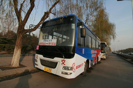 临时摆渡车为出行旅客出行提供方便
