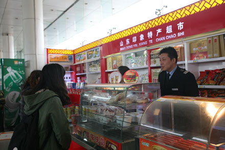 “家乐超市”喜添新成员。为最大限度发挥站务板块的产业支撑作用,充分利用场站空间资源,不断拓展总站营销范围,近日,总站在旅客稠密的候车长廊全新建立了“山东印象特产超市”,以销售德州扒鸡、高唐驴肉等独具特色的山东特产为主,全新打造“家乐超市”品牌化经营模式。同时,多经办积极与销售商洽谈合作,最终确定由娃哈哈等多家销售商承担该店的建设施工,这成为总站合作经营又一次成功的资源互置与互利共赢范例。“山东印象特产超市”的开业,不仅满足了广大旅客的购物需求,更开辟了多经办多元化经营新途径,仅开业前三天的营业额就达到近万元。