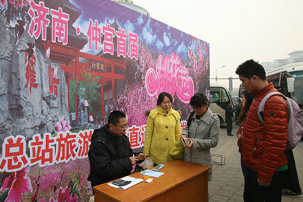 “站运游”开辟新市场。随着“仲宫首届桃花节”的开幕,总站客运营销中心瞄准火爆的赏花游市场,在4月4日——4月12日全力打造总站至仲宫波罗峪景区旅游专线,为广大旅客提供欣赏桃花的专线班车。不仅如此,总站积极与波罗峪景区联系,由景区提供200张免费门票,免费赠送给现场参与活动的旅客。活动一经开展,就吸引了广大旅客的热情参与,仅清明三天假期,总站站前广场就发送近郊游旅客近1000人,实现客票收入36000余元。