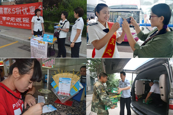 线下售票进校园 暑运期间,总站“学子服务队”全面进驻济南市区、长清大学城及章丘大学城20余所大中专院校,为学子们提供现场售票、现场发车等服务,截止目前,“学子服务队”共售票26000余张。