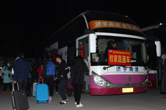 1月14日清晨5:30分,济南长途汽车东站“校家直通车”开进济南职业学院,来自平度、曹县、菏泽等多个地区的300多名学生,兴高采烈地登上了专门为他们定制的“校家直通车”。
