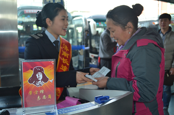 全新推出“雷锋志愿服务”。在3月5日雷锋日到来之际,检票处特别设立“雷锋志愿服务岗”,挑选业务精湛的员工组成“雷锋志愿服务队”,在候车大厅、长廊、收车区、公交车站等旅客密集区,为广大旅客特别是老弱病残孕幼等重点旅客提供班次咨询、购票乘车的“一站式”服务和照顾小孩、运送行李等系列爱心帮扶,弘扬乐于助人、无私奉献的雷锋精神,传播“奉献、友爱、互助、进步”的志愿服务理念。