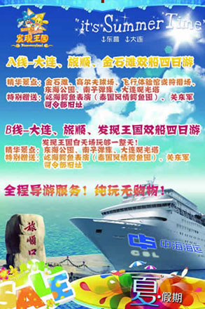 您现在的位置是:首页 > 旅游及新产业 旅游集团推出冰点大连豪华游轮休闲四日游 次 旅游及新产业 发布时间:2014-06-16 10:29:09 旅游集团推出 冰点大连豪华游轮休闲四日游 为回馈集团内部员工及家属,旅游集团携手“中海海运”,隆重推出了“冰点大连豪华游轮休闲四日游”项目。 此次“冰点大连豪华游轮休闲四日游”6月20日首发团,周五出发,周一返回。在济南乘空调旅游车赴东营港乘坐“长山岛”号豪华游轮,直达浪漫之都大连,游客可充分感受游轮出行与大连的独特魅力!限时劲爆价:A线790元/人,B线950元/人,详情可咨询旅游热线:58888999。 (孙迎)