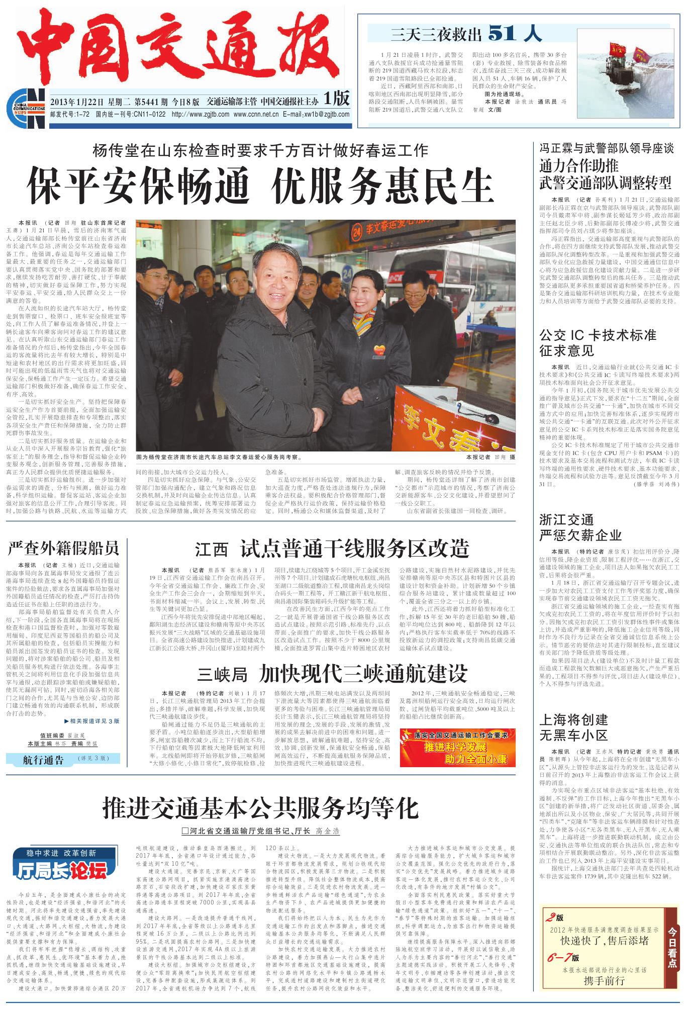 《中国交通报》——交通部部长杨传堂视察山东交运集团春运工作