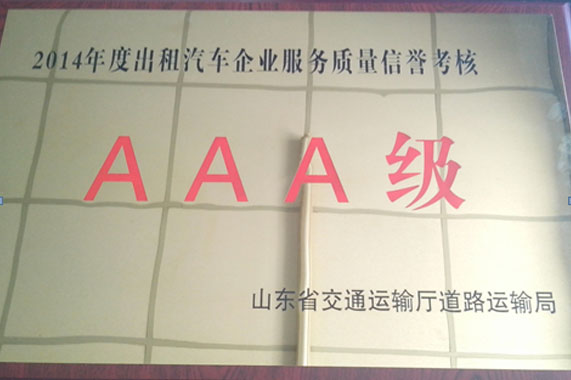 近日,经过省厅道路运输局的复核,山东交运出租获评“2014年度出租汽车服务质量信誉考核AAA级企业”这是自出租行业开展信誉考核工作四年来交运出租第一次获此殊荣,也标志着山东交运出租加入了济南市最优秀的出租车公司群体。